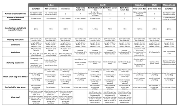 We've broken down the most frequently asked questions about our lunchbox range and put them all into this handy table!