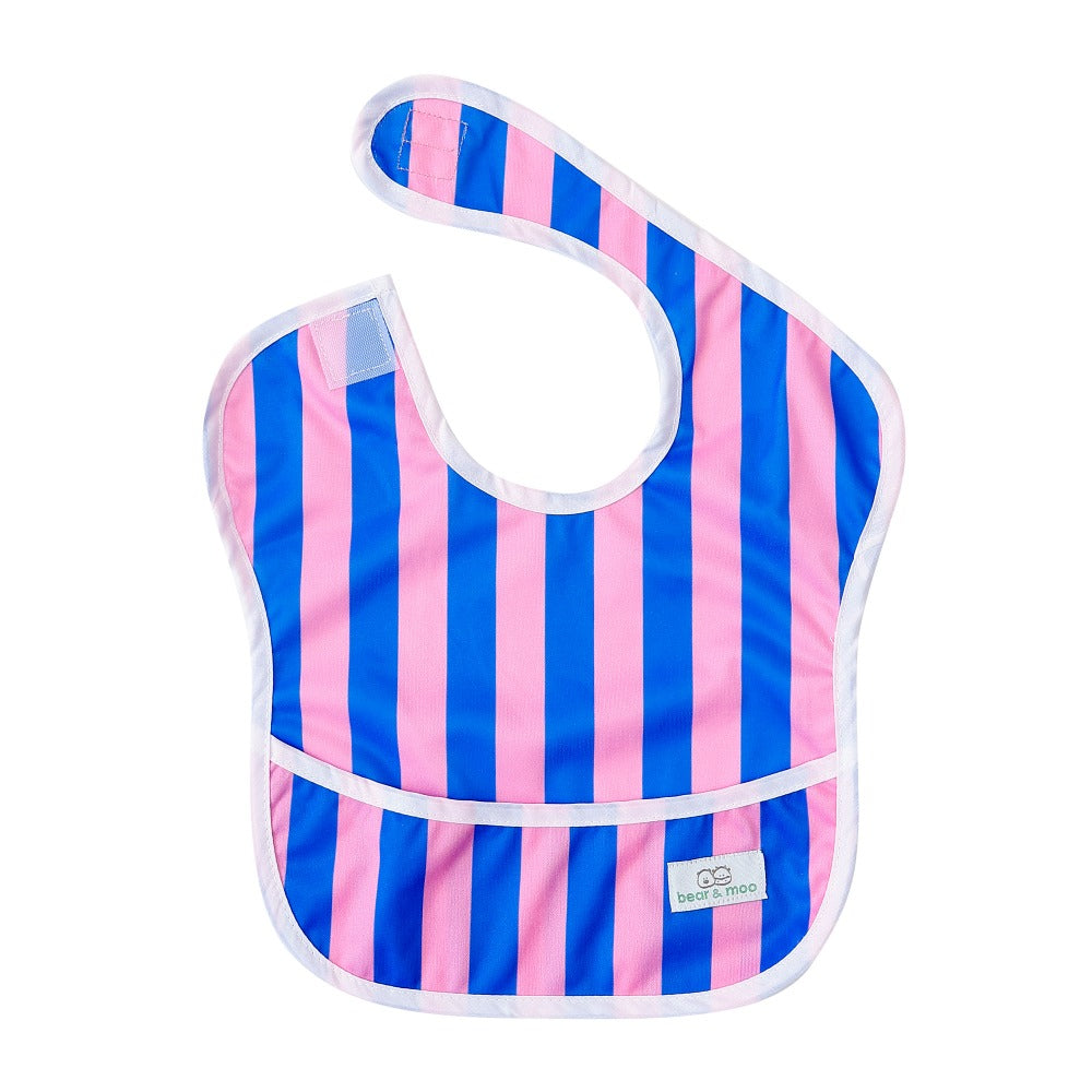 Bear & Moo Classic Bibs are in the same wipeable material as our Sleeved Bibs but in a traditional style. Velcro fastening at the back for quick closing and a pocket at the front for catching mess.