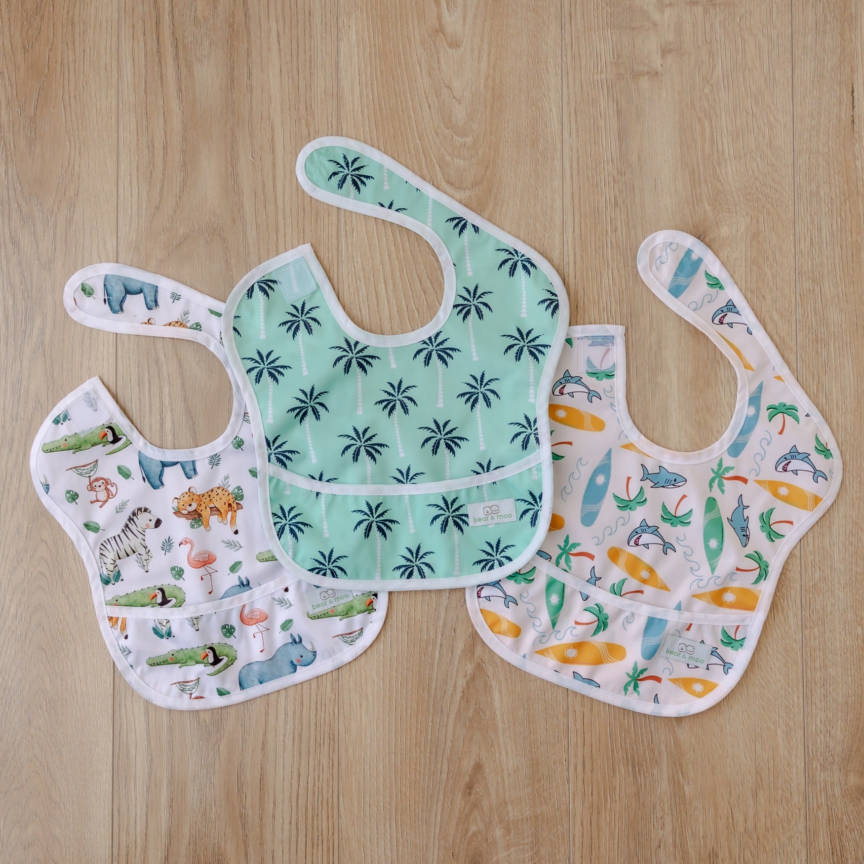 Protect their outfits while eating, playing (& drooling!) with our Classic Bibs.
