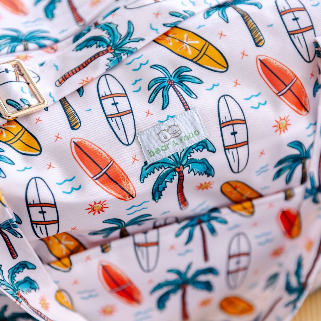 The Bear & Moo Day Bag is here to help you pack your clothes, nappies, togs, lunch, life, with ease and full on reckless abandon.