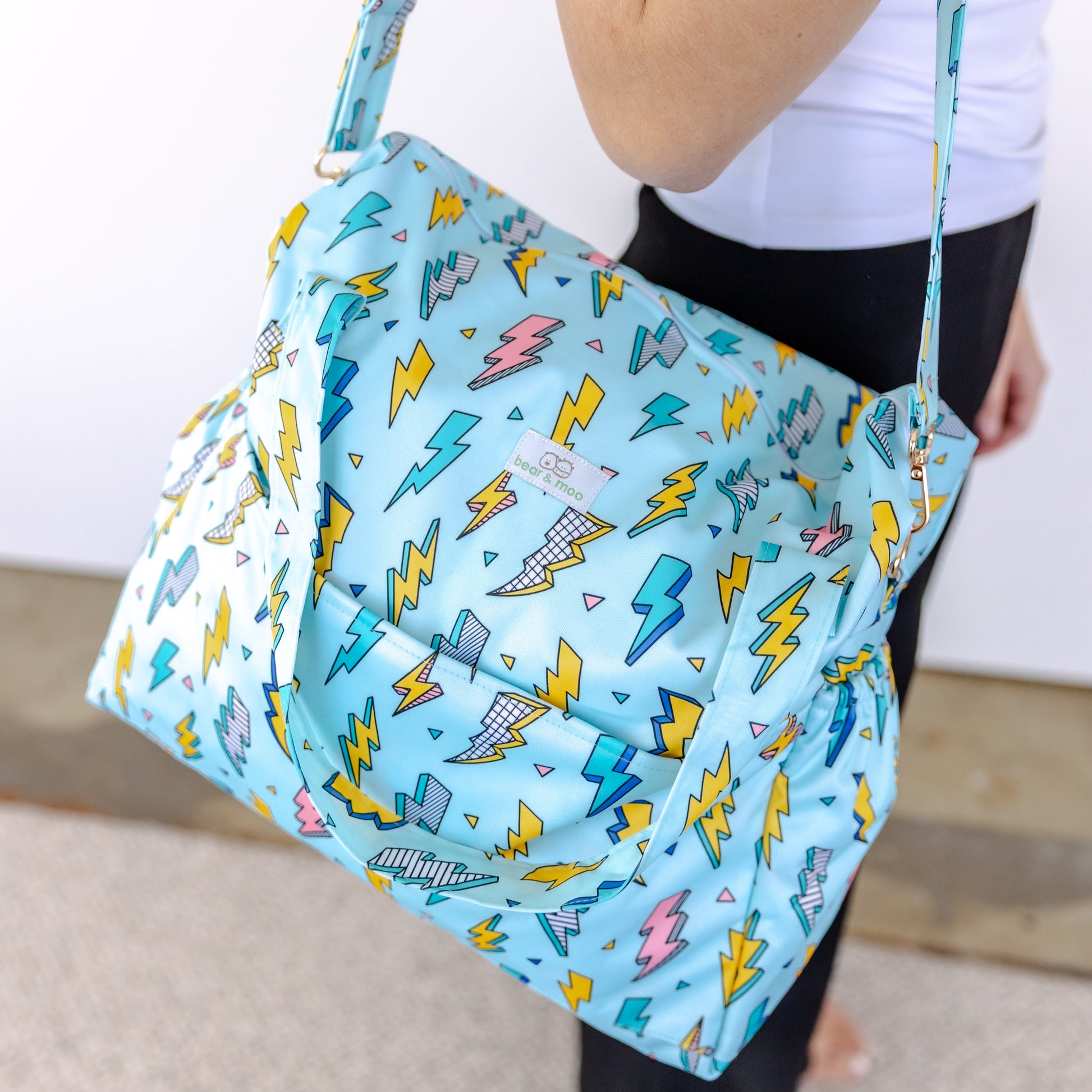 The Bear & Moo Day Bag is here to help you pack your clothes, nappies, togs, lunch, life, with ease and full on reckless abandon.