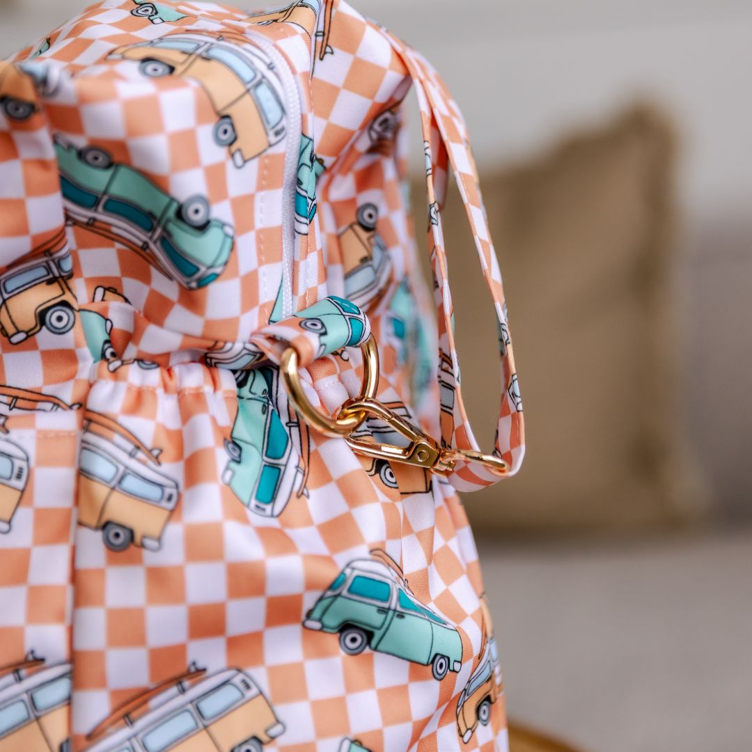 Our Day Bag is made with PUL material, meaning it's waterproof, baby bottle-spill proof, drink bottle leakage-proof, salad dressing-safe.