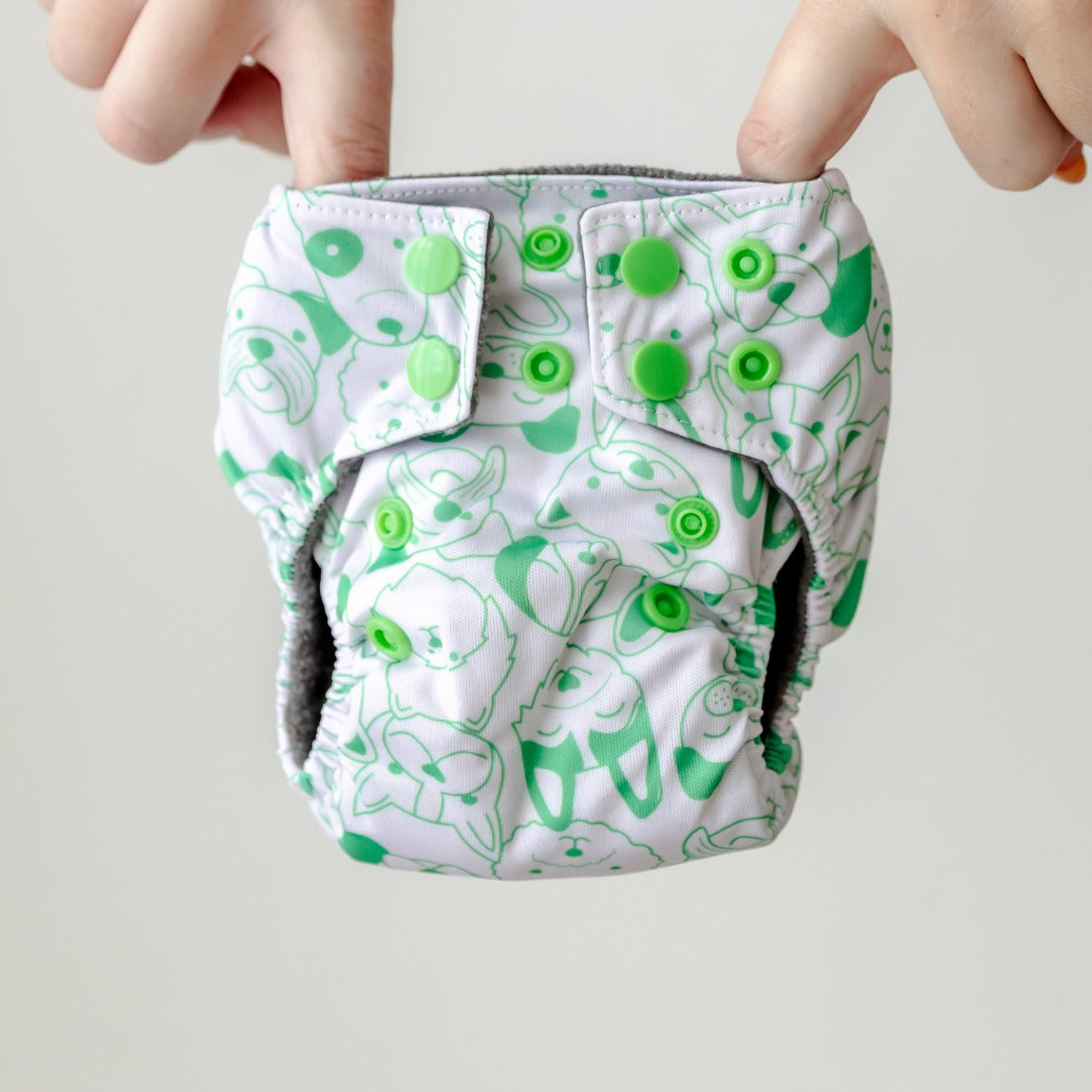 With a Newborn nappy, all the absorbency is built in. There are no inserts, no stuffing of pockets, but also no way to add extra absorbency. They come with a dome in the centre to keep the nappy out of the way of the umbilical cord in those first few days.