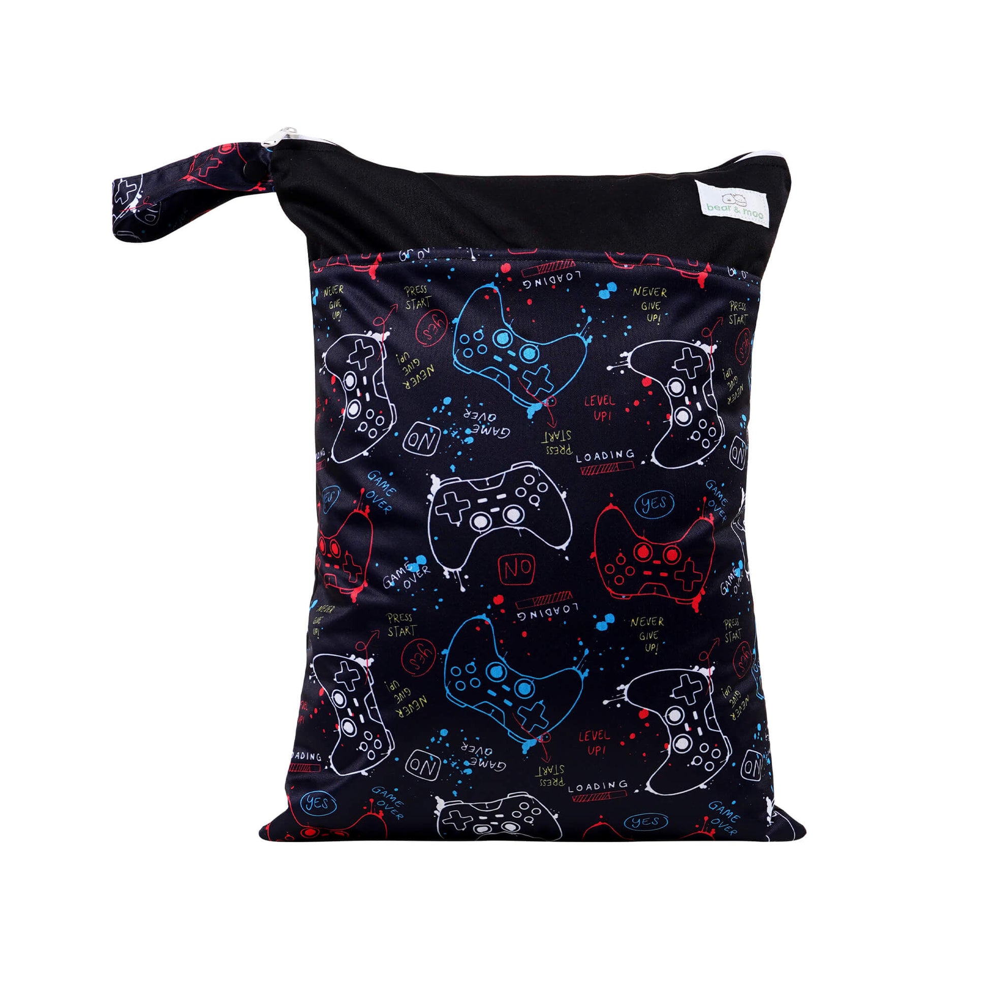 - Bear & Moo Large Wet Bags have a double zipper with two pockets to allow one pocket for dry items and one for wet
