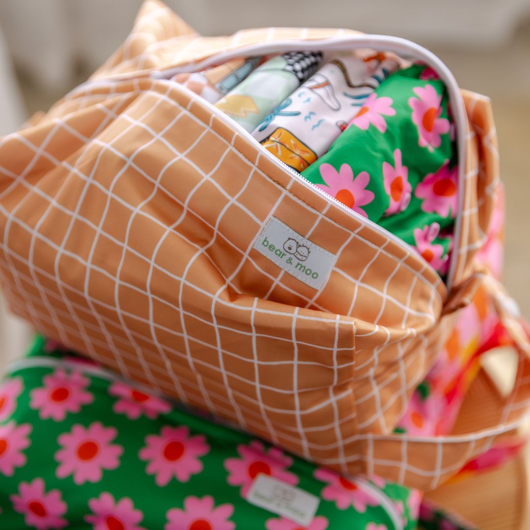 Our Gingernut Gingham print is available in our range of reusable products. You can shop the Gingernut Gingham collection here.