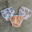 Our Swim Nappies are designed to contain number two's when at the pool or beach, and have no absorbency, as that is what will weigh bub down when in the water.