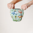 With a Newborn nappy, all the absorbency is built in. There are no inserts, no stuffing of pockets, but also no way to add extra absorbency. They come with a dome in the centre to keep the nappy out of the way of the umbilical cord in those first few days.