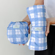 Periwinkle Gingham print is available in our range of reusable products. You can shop the Periwinkle Gingham collection here.