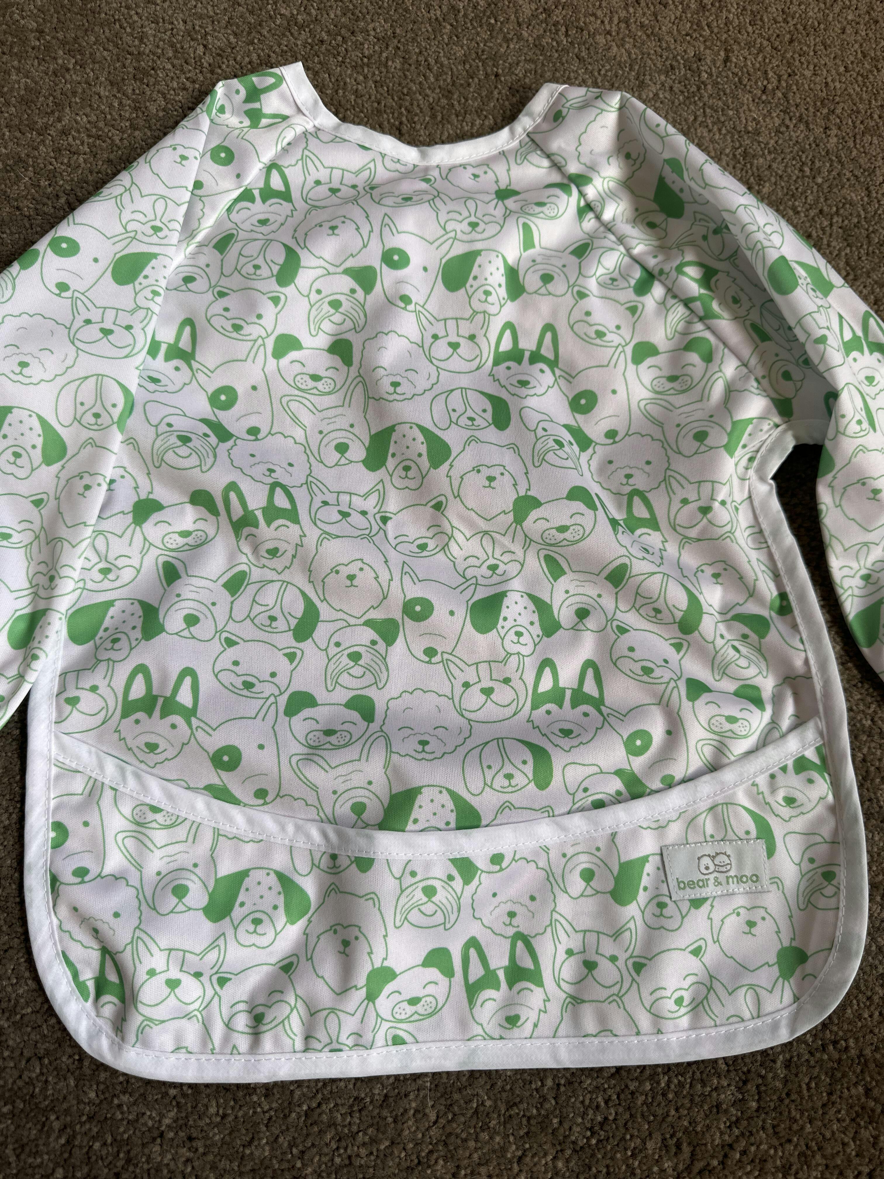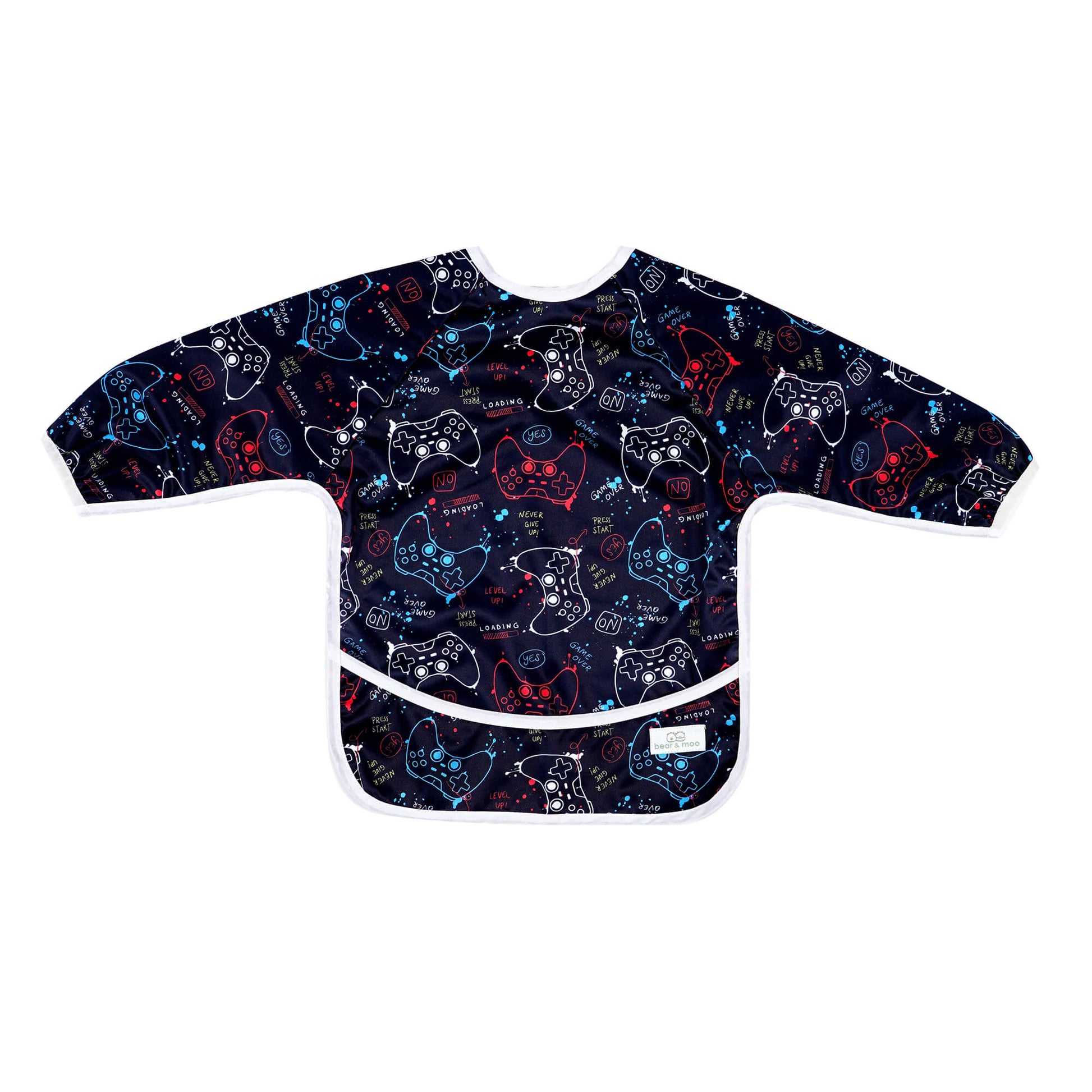 With full length arms and a full-coverage front, keep your little one as clean as possible when eating or playing. Also with a pocket to catch stray pieces of food, wayward bits of crafts or somewhere for them to store their many "treasures".