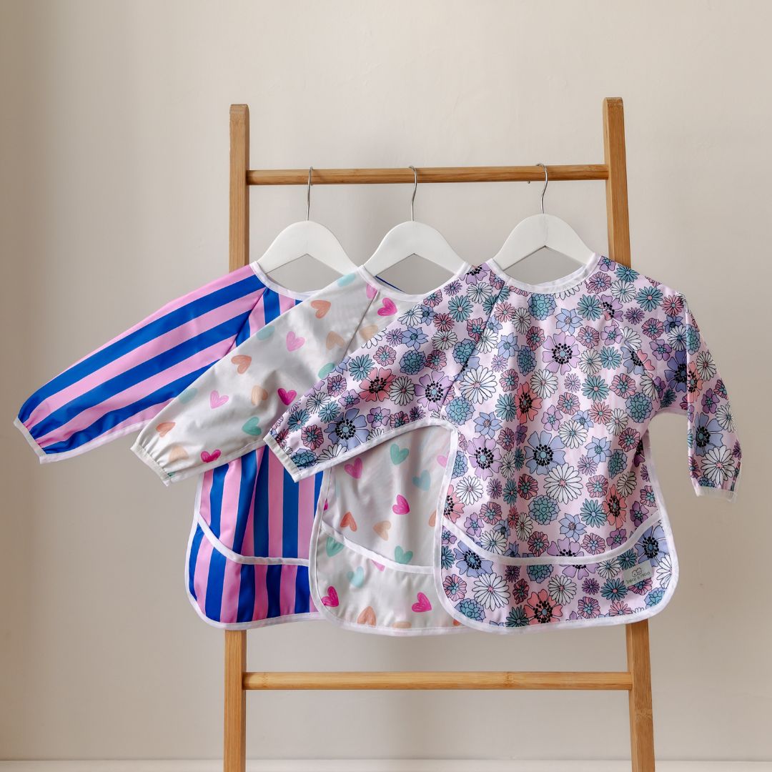 With full length arms and a full-coverage front, keep your little one as clean as possible when eating or playing. Also with a pocket to catch stray pieces of food, wayward bits of crafts or somewhere for them to store their many "treasures".