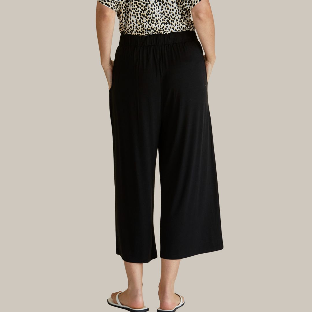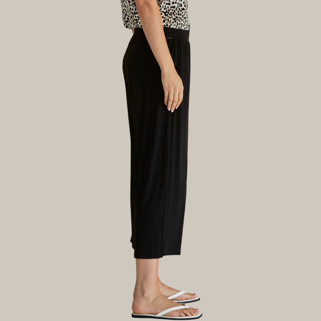 Experience ultimate comfort with the Crystal Crop Jogger. Made from soft stretch bamboo jersey, these Betty Basics joggers feature a wide palazzo leg and flat waistband for a relaxed yet elevated everyday style.