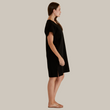 The Elise V-Neck Rib Dress is crafted for a relaxed fit with cap cuff sleeves and side splits. Its classic V-neckline and pockets create an elevated, comfortable silhouette. Perfect for effortless transeasonal elegance with a touch of sophistication.