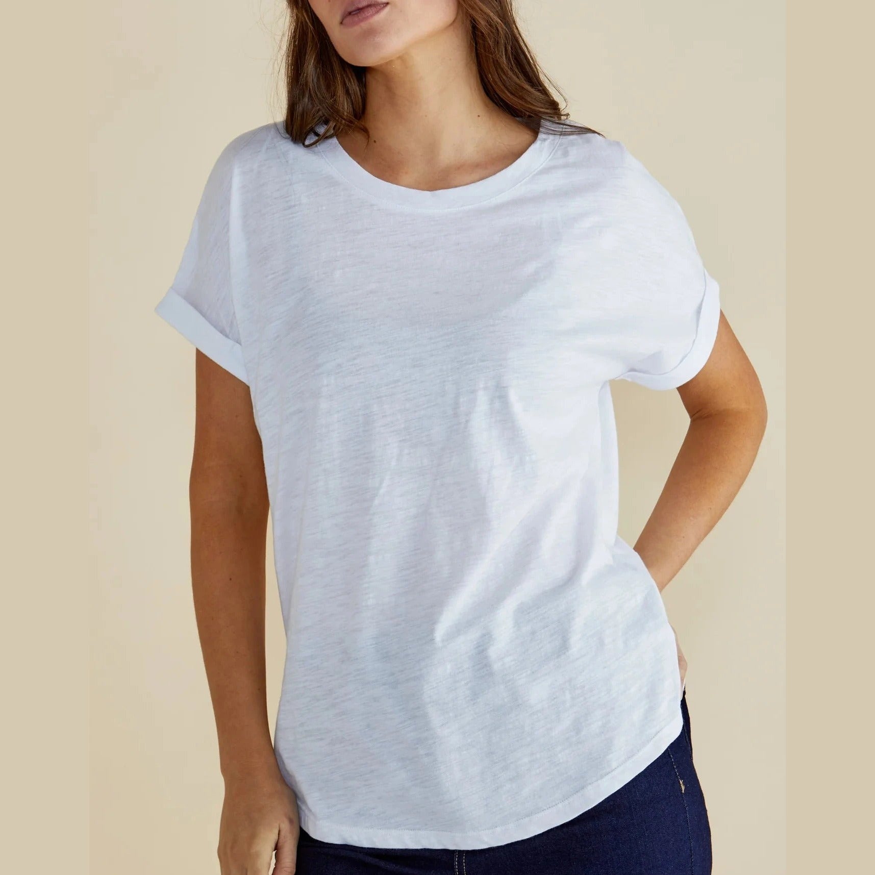 Looking for a tee that's both comfy and versatile? Meet Hailey, made from BCI cotton, this tee is soft to the touch and perfect for layering. It's so comfy you'll never want to take it off! Plus, its short sleeves make it perfect for warmer weather or layering under your favourite blazers and cardigans.