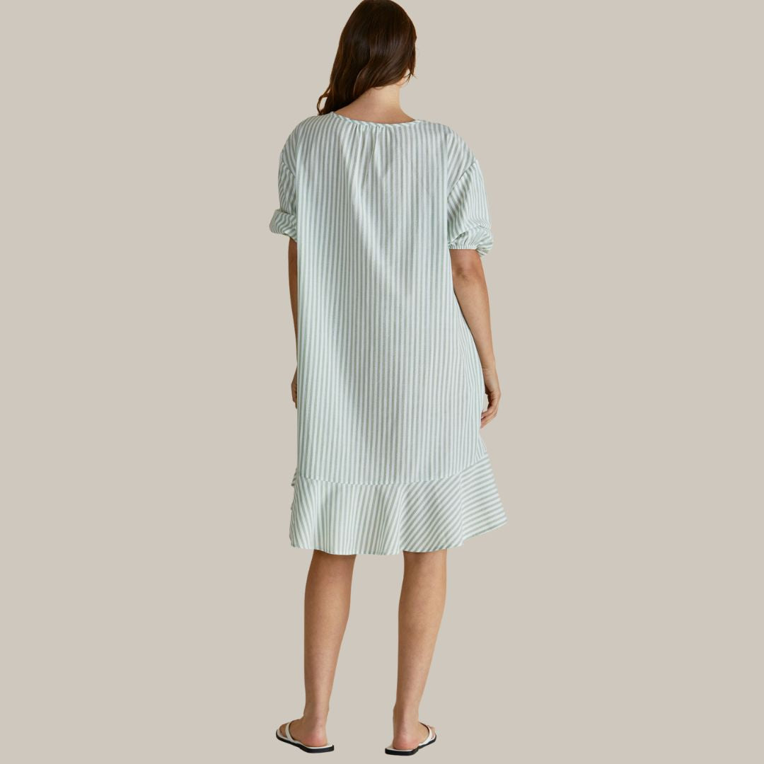 The Livvy Dress captures modern femininity with a touch of effortless charm. Designed with puff sleeves, elasticated cuffs and a tiered hem, this Betty Basics dress flows beautifully on the body. The front neck tie adds a refined detail to its relaxed silhouette. A transeasonal essential for easy, elevated dressing.