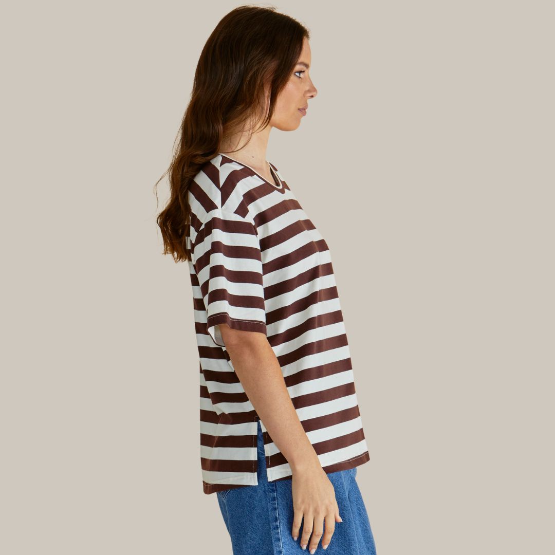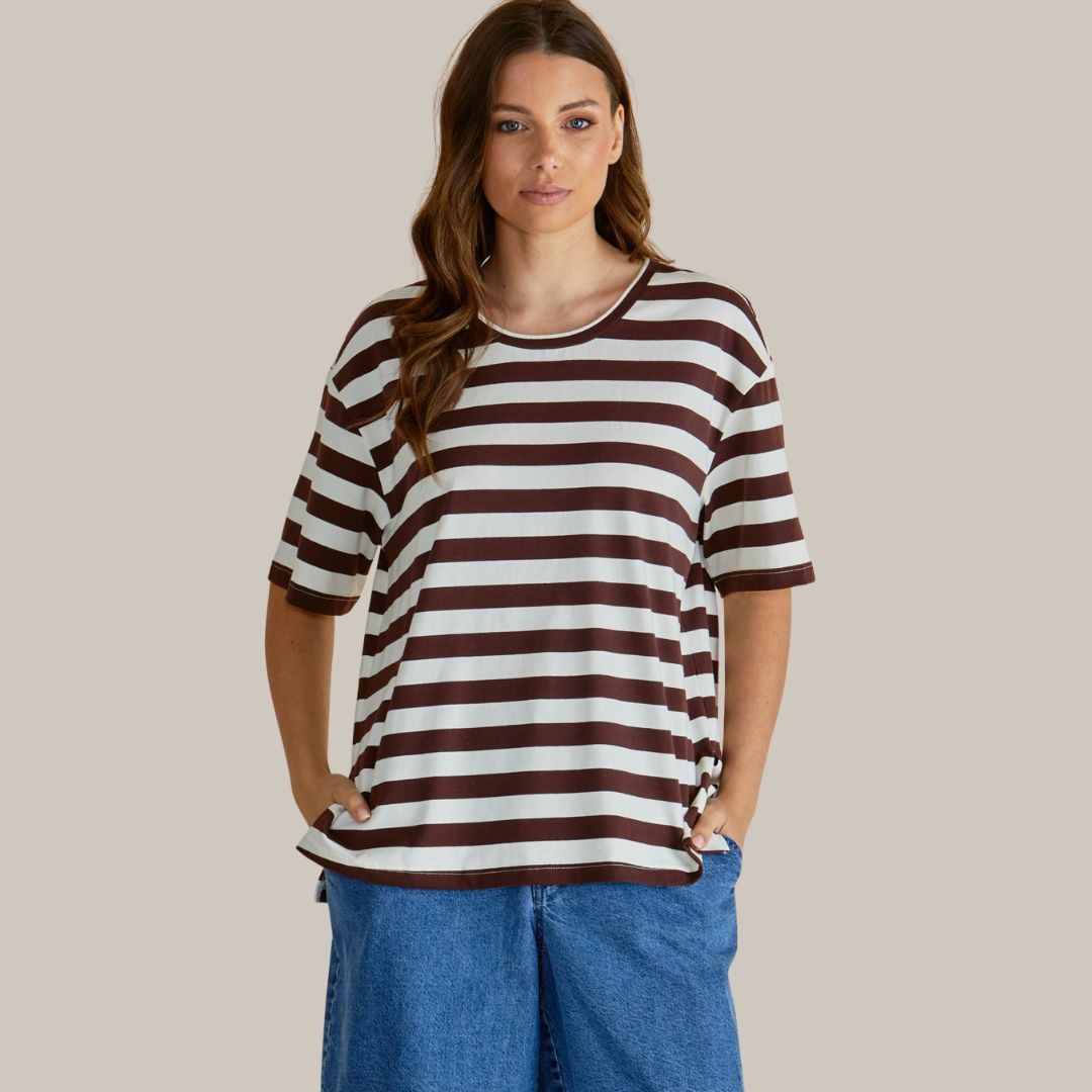 Relax Boxy Tee | Brown Stripe