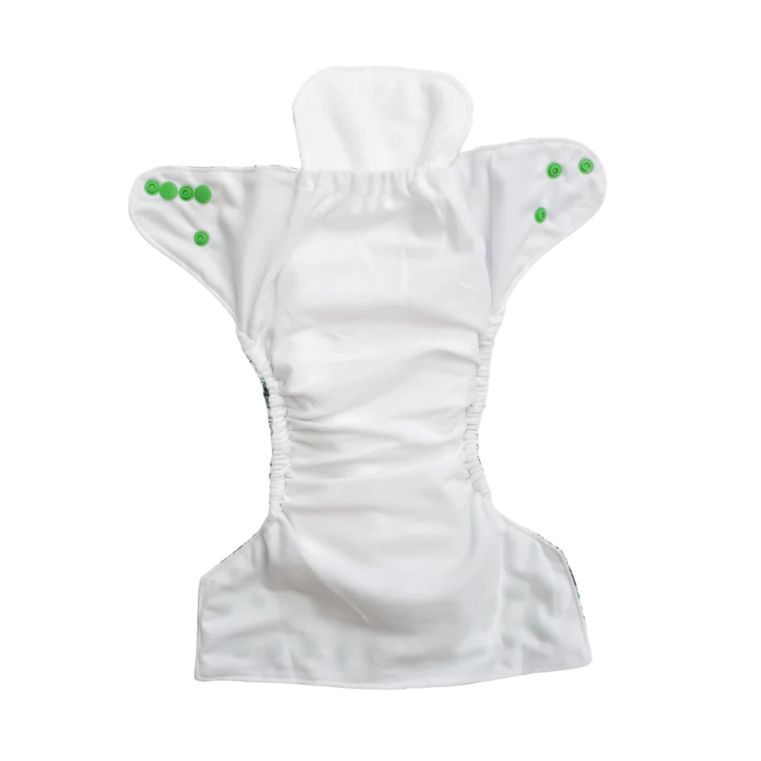 Bear & Moo One Size Fits Most nappies have adjustable domes so that this one size reusable cloth nappy can fit babies between 3.5kg and 18kg. One Size Fits Most are our most popular nappies, with babies generally able to be in this size from 6 weeks onwards - if not earlier.