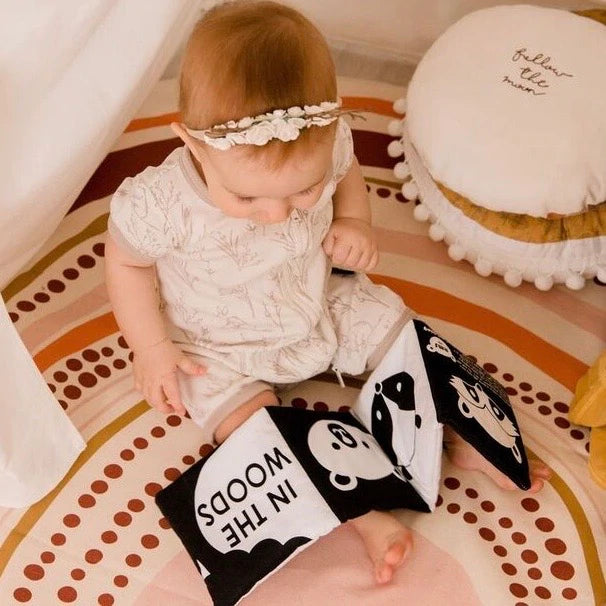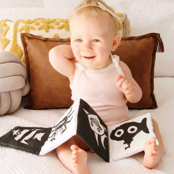 This luxe cotton fold out book is designed for little hands and developing eyes to explore. Featuring all your favourite animals & creatures in these double sided books, baby will love engaging and connecting with the wider worlds in their first soft book.