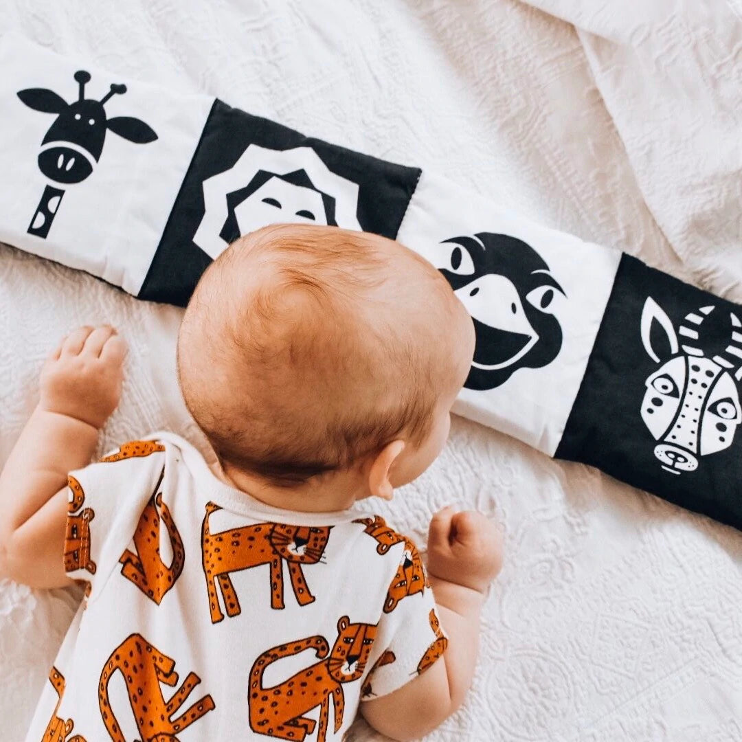 The high-contrast designs will help calm and soothe your baby as well stimulate their visual and cognitive development, increase concentration skills, enhance natural curiosity, and ignite the creation of brain cell connections and overall brain development.